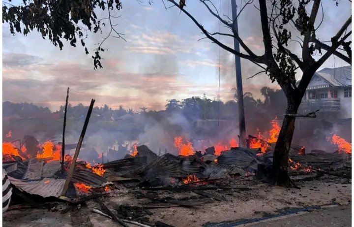 MUNA – Kebakaran hebat melanda deretan kios penjual pakaian bekas di Pasar Laino yang terletak di Jalan By Pass, Kelurahan Laiworu, Kecamatan Batalaiworu, Kabupaten Muna, Minggu pagi 26 April 2026.