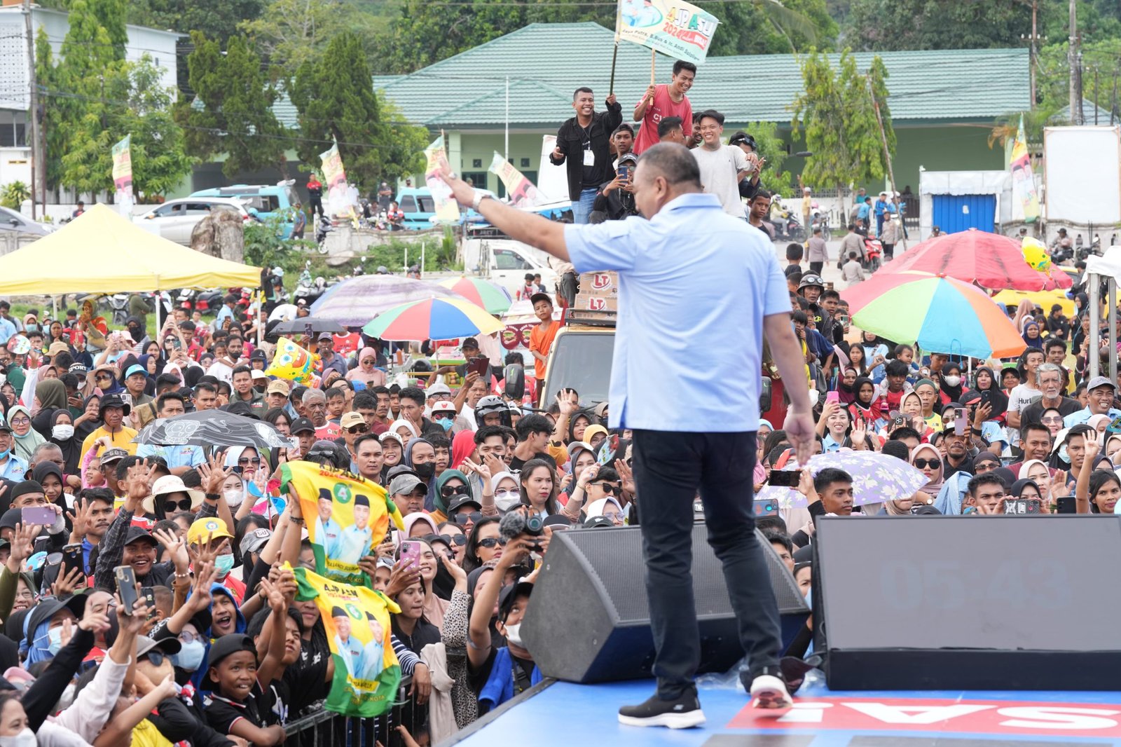 “Tinggal enam hari sebelum pemilihan 27 November. Mau Kendari berdaya saing? Mau Kendari inovatif? Mau Kendari sejahtera? Mau Kendari Aman? Makanya pilih nomor?” ujar AJP yang disambut teriakan nokor 4 oleh ribuan massa yang hadir.