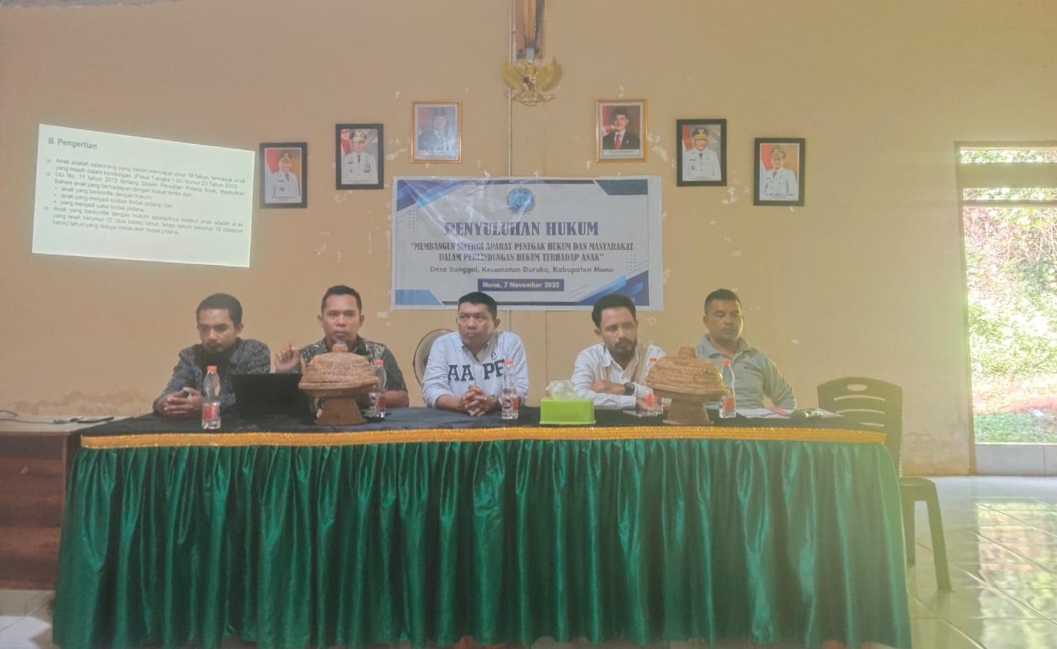 MUNA – Dalam upaya meningkatkan kesadaran hukum masyarakat dan memperkuat tata kelola pemerintahan desa, Pemerintah Desa Banggai, Kecamatan Duruka, Kabupaten Muna, Sulawesi Tenggara, menggelar penyuluhan hukum dengan tema “Membangun Sinergi Aparat Penegak Hukum dan Masyarakat dalam Perlindungan Hukum terhadap Anak” pada Jumat, 7 November 2025.