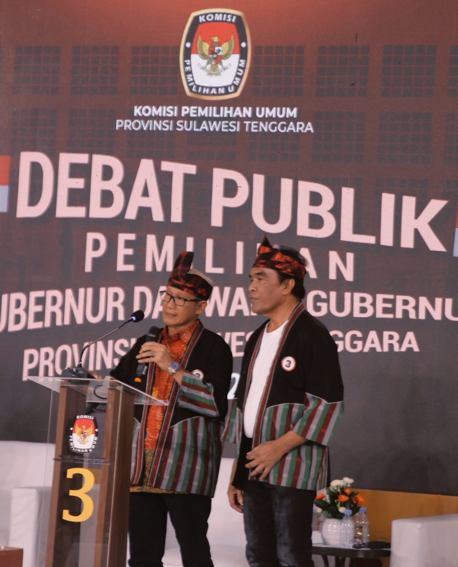 PENAFAKTUAL.COM, BAUBAU – Calon Gubernur Sulawesi Tenggara (Sultra) Lukman Abunawas-Laode Ida ikut dalam debat perdana Pilgub yang bertemakan ‘Pendidikan, Kesehatan dan Pelayanan Publik yang Inklusif’ di Baubau, Sabtu, 19 Oktober 2024.