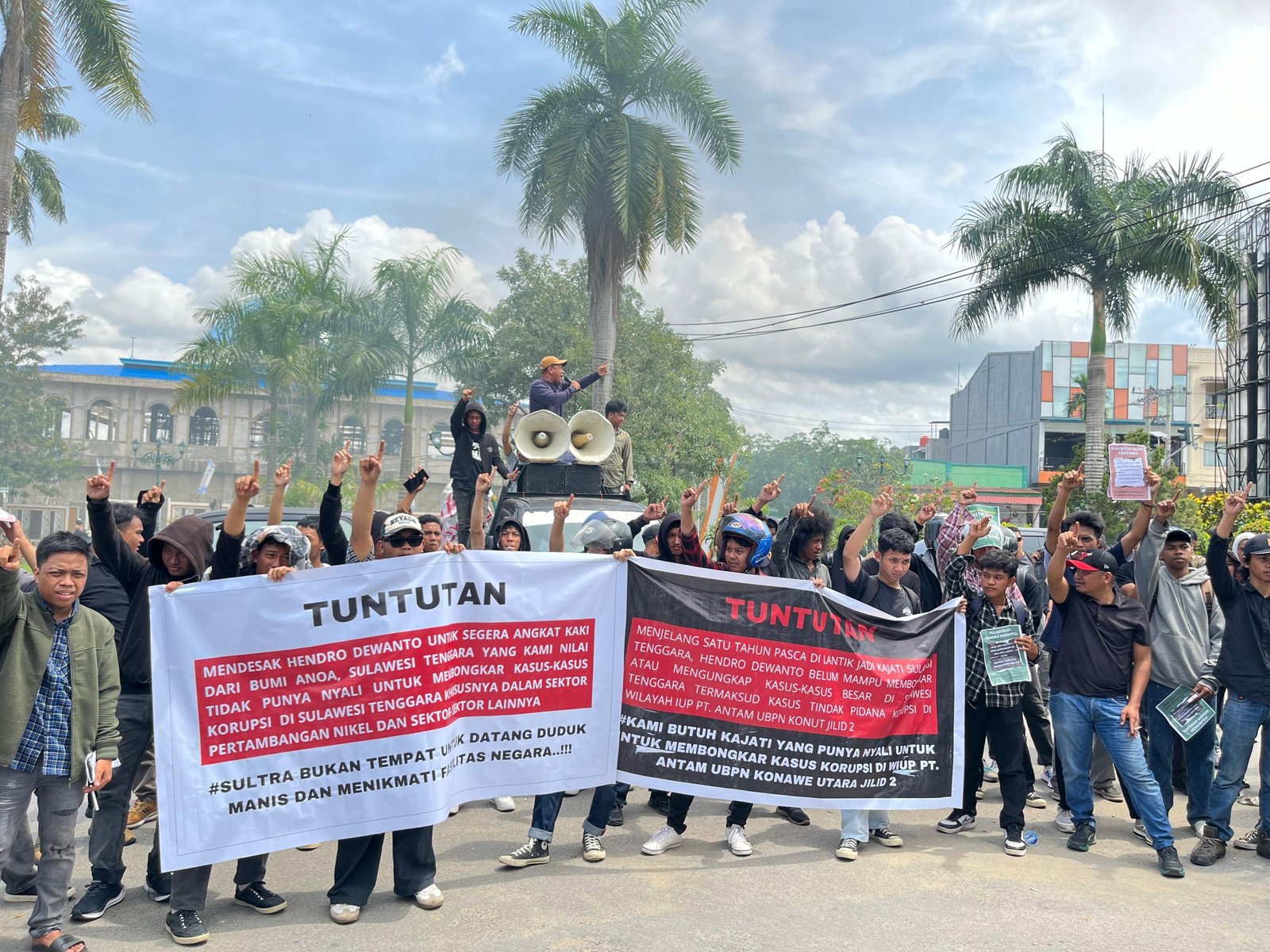 Kedatangan ratusan massa aksi tersebut guna mendesak agar Hendro Dewanto segera mundur dari jabatannya sebagai Kepala Kejaksaan Tinggi (Kajati) Provinsi Sulawesi Tenggara.