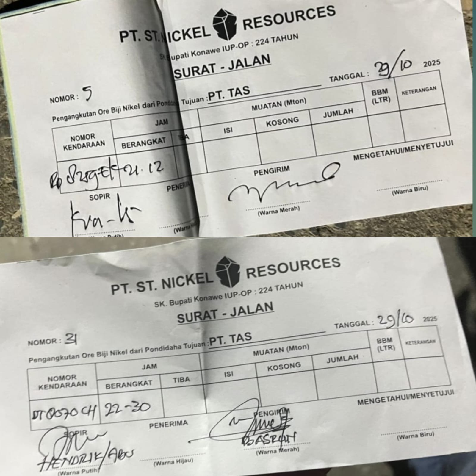 Sopir truk yang diperiksa tidak dapat menunjukkan surat jalan pengiriman yang lengkap, sehingga menimbulkan keraguan tentang kepatuhan PT ST Nikel Resources terhadap peraturan yang berlaku. Selain itu, truk pengangkut ore juga melintas di jalur umum yang sebelumnya telah dinyatakan dilarang karena risiko keselamatan dan kerusakan infrastruktur.