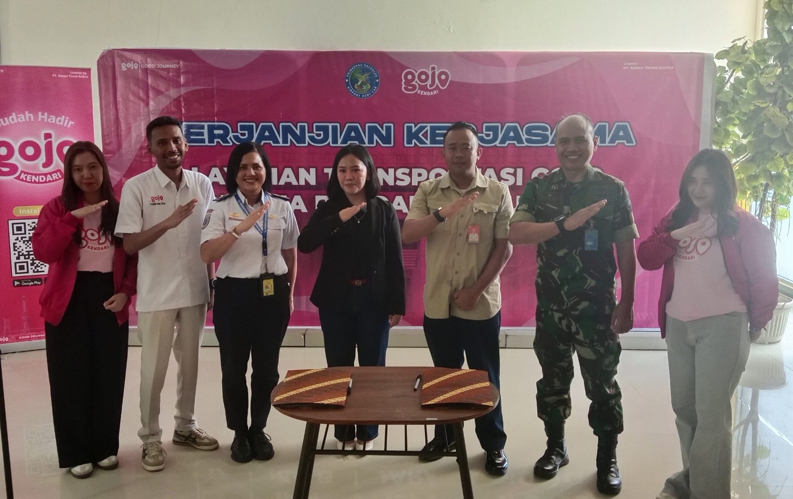 KENDARI – CEO Gojo Kendari dan Kepala Koperasi Lanud Halu Oleo, Letda Lek Zainal Muttaqin, menandatangani perjanjian kerja sama atau MoU pengoperasian layanan aplikasi transportasi online Gojo di Bandar Udara Halu Oleo, Rabu, 11 Maret 2026.