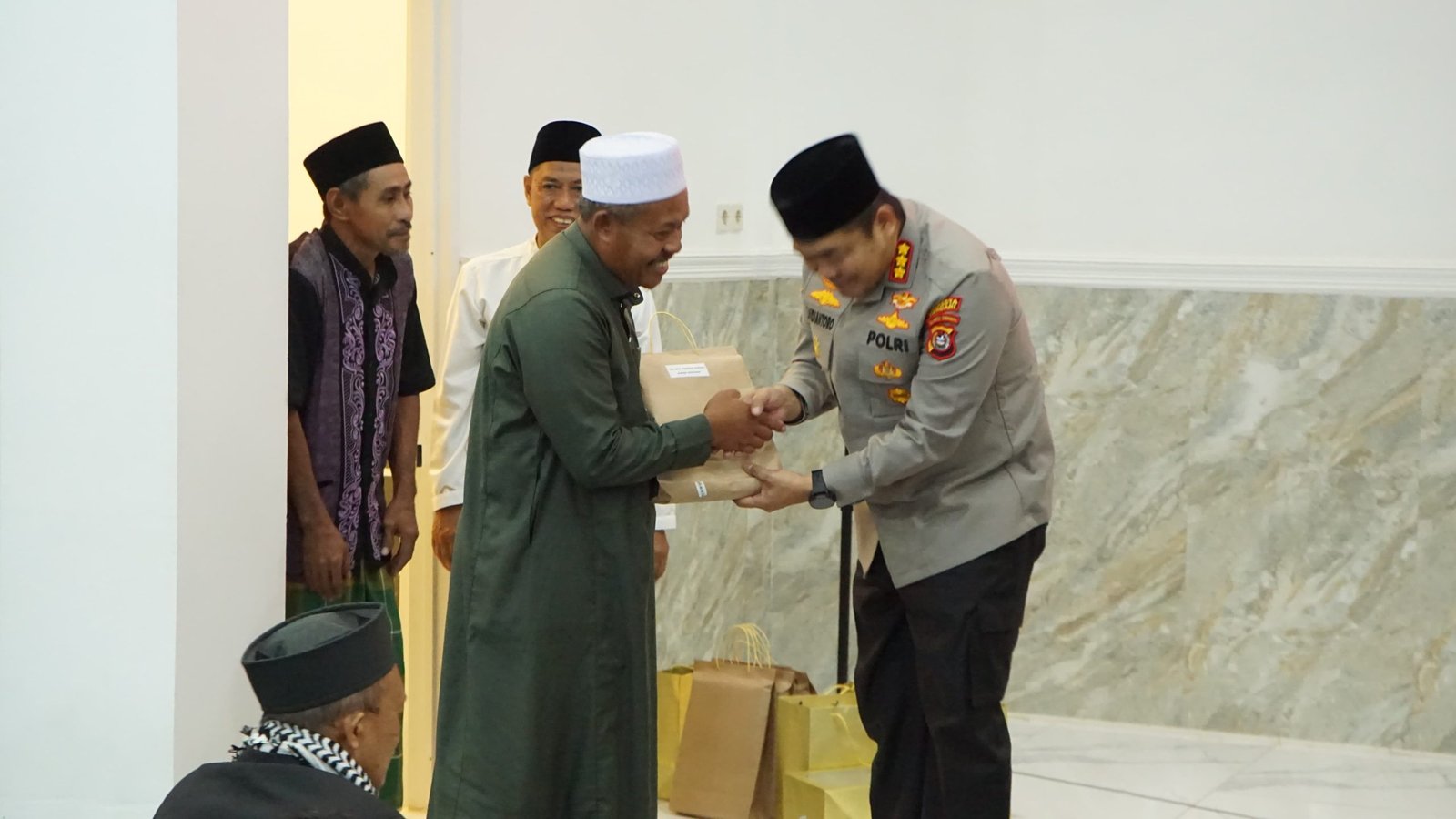 PENAFAKTUAL.COM, KENDARI – Kapolresta Kendari, Kombes Pol Eko Widiantoro, memberikan tali asih kepada jamaah masjid Raudhatul Iman di Kendari. Acara ini berlangsung setelah pelaksanaan sholat tarawih dan dihadiri oleh PJU Polresta Kendari serta jamaah masjid.
