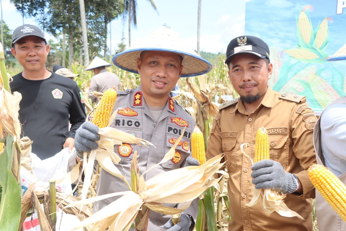Kapolres Konut, AKBP Rico Fernanda bersama Kepala Desa Tambakua dalam acara panen raya jagung Kuartal ke-IV. Foto: Istimewa
