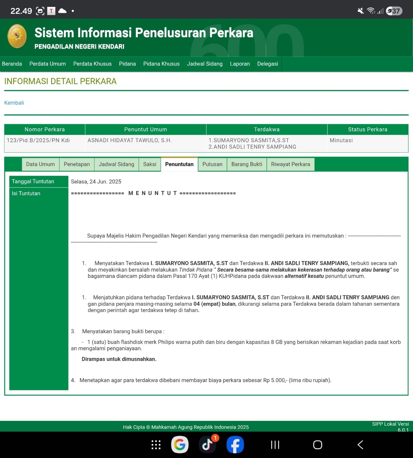 Pasalnya, dua oknum Aparatur Sipil Negara (ASN) di lingkungan Pemerintah Provinsi Sultra, Sumaryono Sasmita dan Andi Sadli Tenry Sampiang, hanya dijatuhi hukuman penjara empat bulan dengan masa percobaan oleh Majelis Hakim Pengadilan Negeri (PN) Kendari pada 11 Juli 2025.