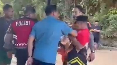 Sejumlah personel kepolisian yang berada di lokasi berusaha menengahi perdebatan tersebut guna mencegah situasi berkembang menjadi keributan besar.