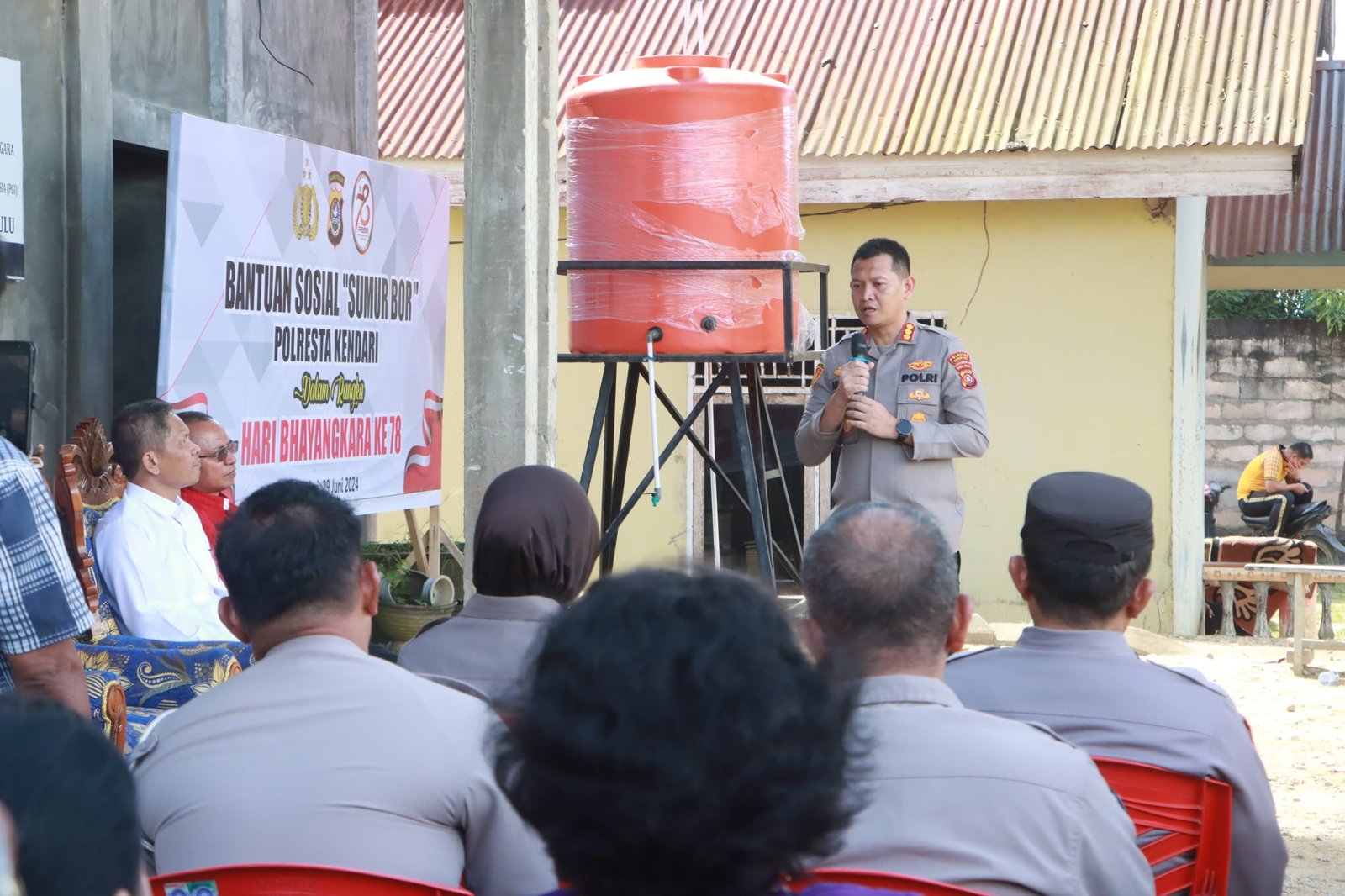 Kapolresta Kendari Kombes Pol Aris Tri Yunarko dalam sambutannya menyampaikan bahwa Polresta Kendari telah menggelar beberapa kegiatan sosial dan salah satu diantaranya yakni pemberian bantuan berupa sumur bor.