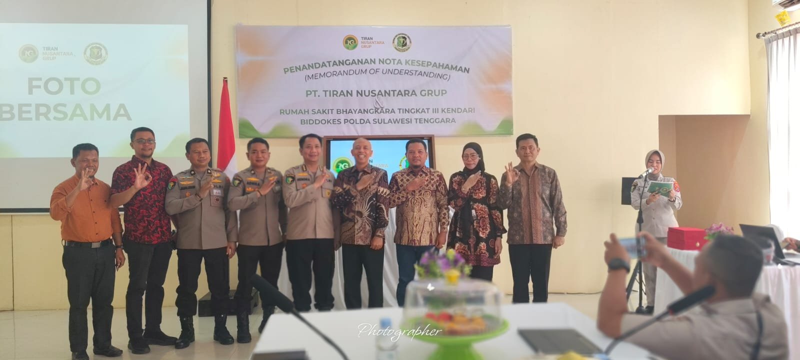 Penandatanganan MoU ini berlangsung di Ruang Aula RS Bhayangkara Kendari pada Rabu,21 Januari 2026 yang dihadiri oleh Direktur Utama PT TNG Rahman Arif, Direktur P Tiran Indonesia Capt H Andi Jamaluddin Arsyad, Asisten Direktur Bidang SDM dan Aset PT TNG Asma Aburaera, Kepala Satuan Pengawas Internal PT TNG Anwar Hasan, Dokter PT Tiran Indonesia dr Andi Muhammad Machrum, dan Humas TNG H La Pili.