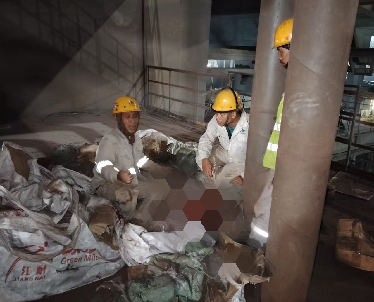 Gambar yang diterima media menunjukkan pekerja tersebut terjatuh dari atas dan dikelilingi tiga pekerja lainnya yang menggunakan helm kuning dan baju berwarna abu-abu dengan logo VDNI di dada. Korban terlihat terbaring dengan darah yang berhamburan di bagian dada.
